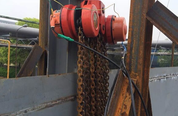 爬架电动葫芦是通过电动机驱动链条,实现附着式升降脚手架的整...